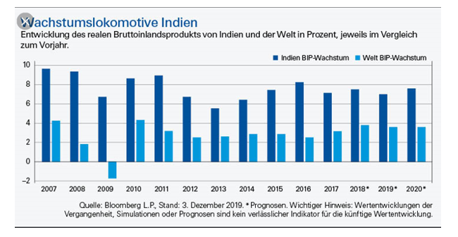 Daneben spielen noch andere Faktoren eine Rolle, der wachsende Konsum auf dem bevölkerungsreichen Subkontinent beispielsweise. Das Weltwirtschaftsforum prognostizierte im Frühjahr, dass sich die Konsumausgaben in Indien, die 60% des indischen BIP ausmachen, von derzeit 1,5 Billionen US-Dollar bis 2030 auf satte 6,0 Billionen Dollar vervierfachen werden. Damit würde Indien zum weltweit drittgrößten Verbrauchermarkt nach China und den USA aufsteigen.
