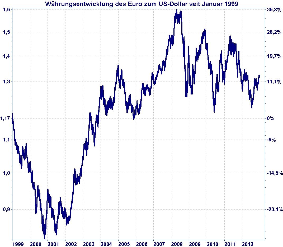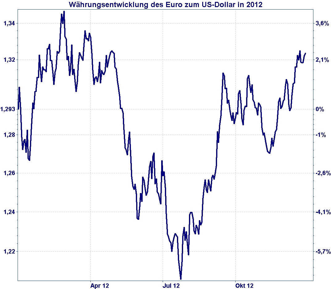 Wie die Entwicklung des Eurokurses in 2012 zeigt, sind Währungsrelationen keine Einbahnstraßen. Die Prognose künftiger Währungsentwicklungen ist mit das Schwierigste, was ein Fondsmanager zu leisten hat.