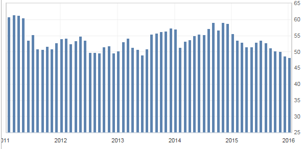 Die Amerikanische Wirtschaft zeigt zum Jahresbeginn 2016 ein gemischtes Bild. Die Schwäche des produzierenden Gewerbes (Manufacturing Sektor) ist unübersehbar. Hier hinterlässt die kräftige Aufwertung des Dollars gegenüber nahezu allen Währungen in den vergangenen rund eineinhalb Jahren deutliche Bremsspuren. Die amerikanische Ölindustrie leidet unter dem schwachen Ölpreis. Investitionen wurden rigoros zusammengestrichen, Personal im größeren Umfang entlassen. Der Manufacturing Sektor ist mittlerweile unter die Wachstumsschwelle von 50 gerutscht.